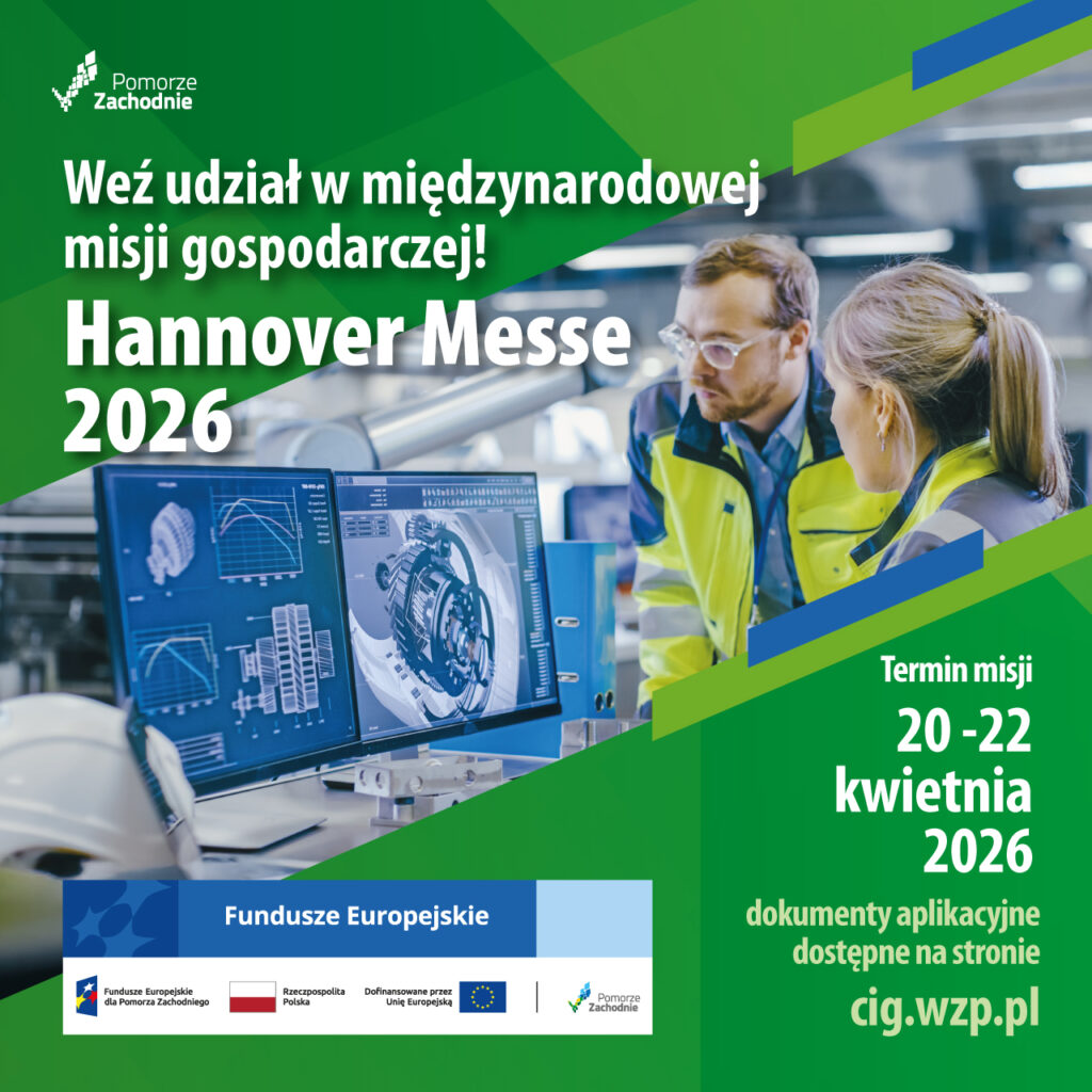 Die Teilnahme an der Veranstaltung wird im Rahmen des nicht wettbewerblichen Projekts „Kurs auf Export“ gefördert, das im Programm Europäische Fonds für Westpommern 2021–2027, Maßnahme 1.9 – Vorbereitung und Umsetzung neuer Geschäftsmodelle von Unternehmen (einschließlich gemeinsamer Projekte von Unternehmen und Business-Development-Institutionen) – Projekttyp 3: Exportförderung und Internationalisierung von KMU, durchgeführt wird.