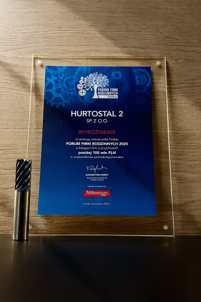 Die Hurtostal 2 Sp. z o.o. wurde im Ranking des Magazins Forbes „Forum der Familienunternehmen 2025” ausgezeichnet – in der Kategorie der Unternehmen mit einem Umsatz von unter 100 Mio. PLN in der Woiwodschaft Westpommern. Diese Ehrung würdigt die konsequente Entwicklung unseres Familienunternehmens sowie das Engagement unseres gesamten Teams.