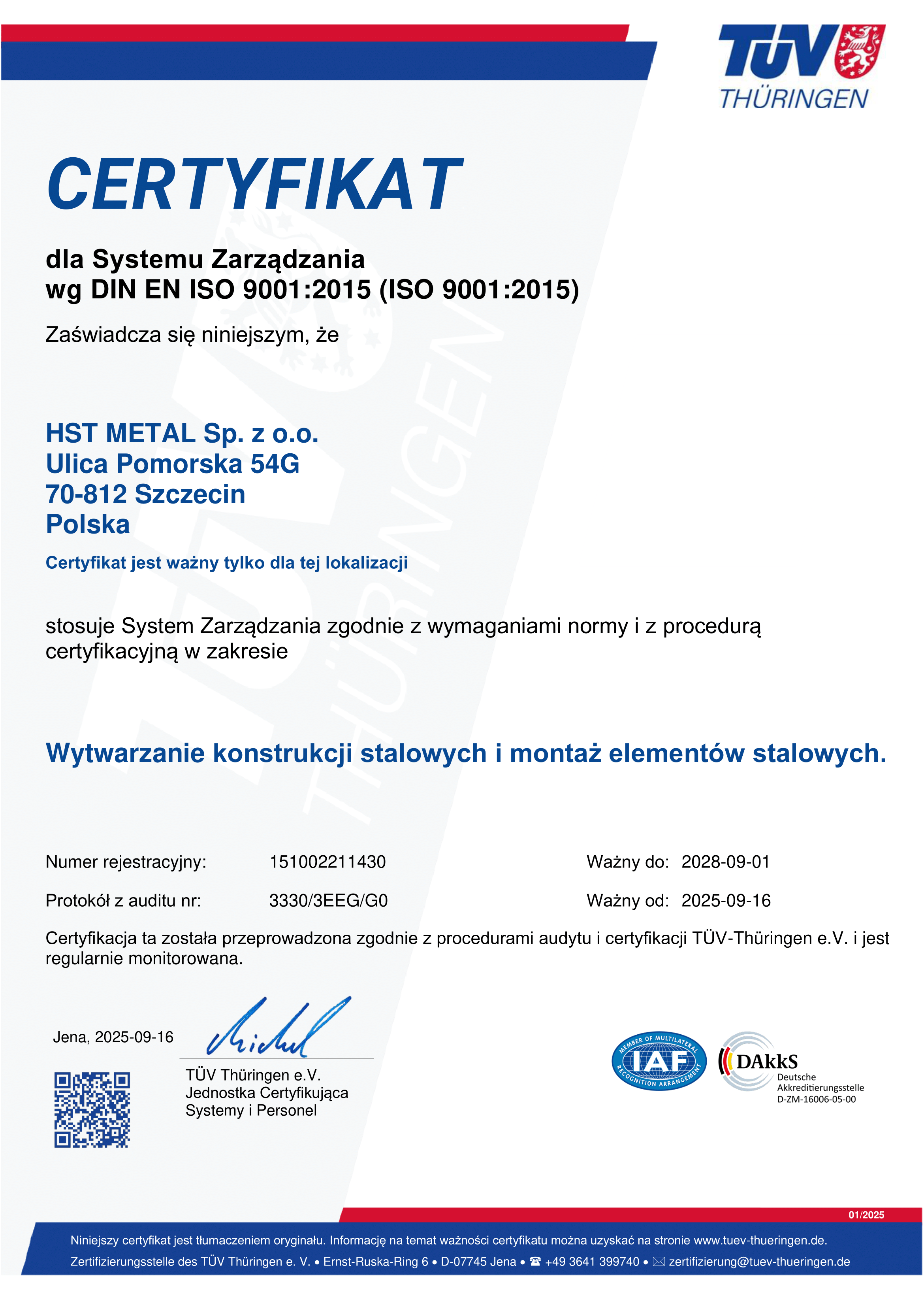 Das Unternehmen HurtoStal 2 GmbH spezialisiert sich auf die umfassende Kundenversorgung mit hochwertigen Stahlprodukten. Wir bieten unseren Kunden ein breites Sortiment und hohe Qualität der verkauften metallurgischen Materialien und einen umfassenden Service. Im ständigen Verkauf haben wir Hüttenprodukte, die von führenden Stahlproduzenten geliefert werden, wir bieten auch Stahlprodukte aus eigener Produktion an, erbringen Dienstleistungen im Bereich der Metallverarbeitung und fertigen Stahlkonstruktionen. Alle unsere Produkte werden mit der Möglichkeit des Transports zum Kunden verkauft. Wir zeigen ständige Sorge um die Entwicklung des Unternehmens durch die Einführung moderner organisatorischer und technologischer Lösungen und Sorge um die Entwicklung und Erhöhung der Kompetenzen unserer Mitarbeiter. Unsere Qualitätspolitik basiert auf dem in unserem Unternehmen eingeführten Qualitätsmanagementsystem, das mit der internationalen Norm ISO 9001: 2015 übereinstimmt, mit vollem Engagement des Vorstandsvorsitzenden, der gesamten Führung und der Beteiligung aller Mitarbeiter des Unternehmens.